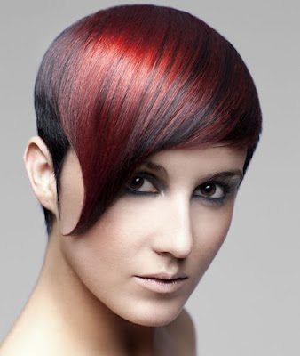 Cabello corto con flequillo más largo.La parte inferior muy oscura expone eficazmente el cuello y el flequillo largo que cae sobre la frente y los ojos le dará un aspecto femenino e incluso ligeramente agresivo.